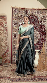Color: Classic navy blue saree with a contrasting cyan blouse — a sophisticated and eye-catching combination