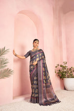 Step into sophistication with this Wine Diya Silk saree, blending traditional richness with modern charm through jacquard weaving and digital print accents.