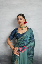 Rooted in elegance and inspired by heritage, this timeless blue satin silk saree captures the calm of tradition with the edge of modern artistry. Its fluid drape, contemporary digital prints, and refined Jarkhan border make it a graceful choice for life’s most cherished moments.