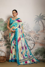 Vibrant, elegant, and eye-catching — this multicoloured moss printed saree features intricate digital prints enhanced with a striking blue Casab zari border. Perfectly blending traditional craftsmanship with contemporary style, it is ideal for weddings, festive occasions, cultural events, and special celebrations.