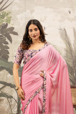 Make a graceful impression in this elegant Pink saree crafted from luxurious Georgette Silk, known for its lightweight texture and flowing drape. Adorned with diamond work, fine embroidery, and digital patchwork, this saree strikes the perfect balance between traditional elegance and modern glam—ideal for weddings, festive gatherings, and celebrations.