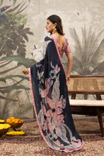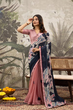 Graceful Pink & Grey Digital Printed Crepe Saree