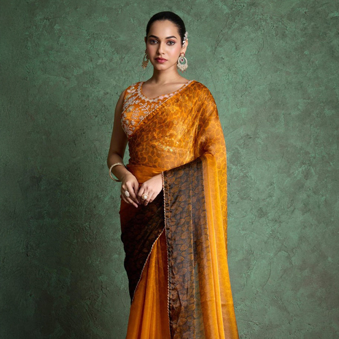 Save 25%Radiant Orange Satin Silk Saree with Digital PrintsRadiant Orange Satin Silk Saree with Digital Prints