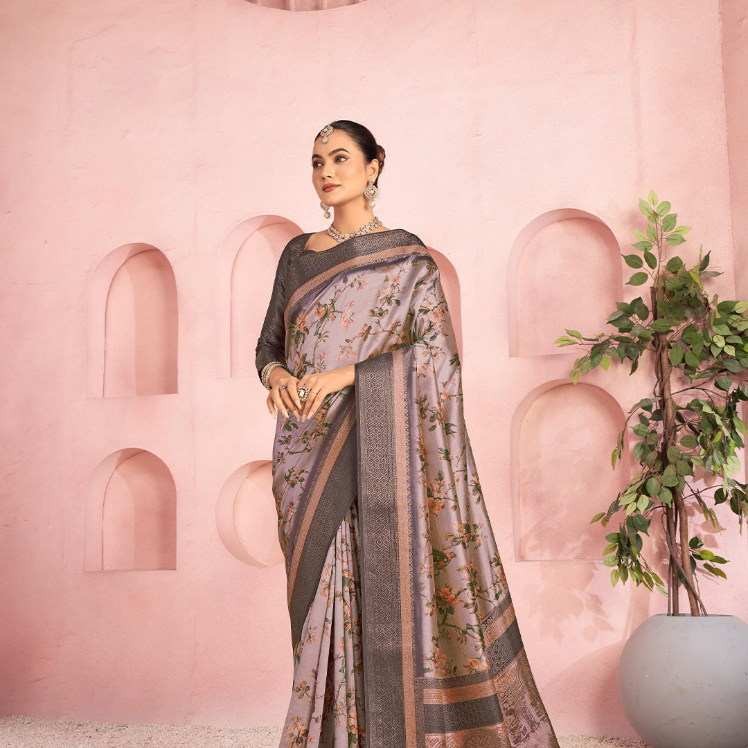 Save 25%Lavender Moss Zari Printed Saree with Casab Zari BorderLavender Moss Zari Printed Saree with Casab Zari Border