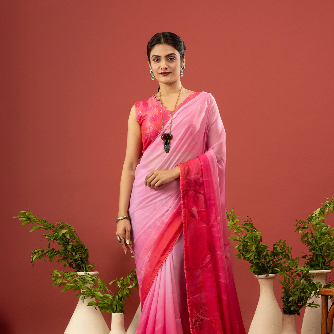 Save 25%Hand Brush Print Pink Barbella Silk SareeHand Brush Print Pink Barbella Silk Saree