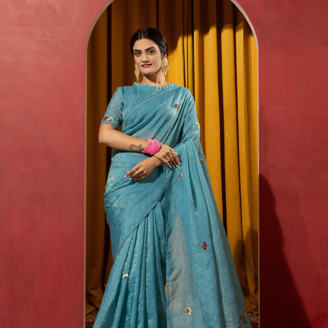 Save 25%Light Blue Moss Zari Printed Saree with Casab Zari BorderLight Blue Moss Zari Printed Saree with Casab Zari Border