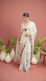Category: Designer sarees, Diwali, Festival sale, Georgette, Guldasta, Onam, Sale, White