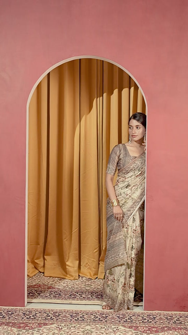 - Dry carefully: Always air-dry the saree in the shade — never under direct sunlight. Let it dry flat or on a soft surface to preserve shape and color.