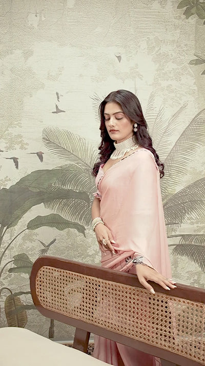 💫 Perfect for casual get-togethers, festive celebrations, and day events, this pink digital-embroidered saree blends modern aesthetics with traditional grace.