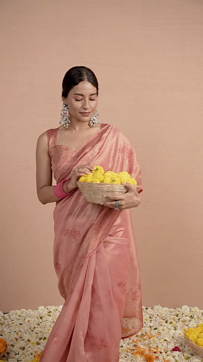 Pink Tissue Saree With Embroidery Boota