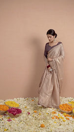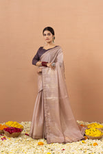 Delicate and captivating, this pink Tussar silk saree shines with luxurious Zuri foil work and elegant embroidery. A graceful choice for festive occasions, crafted to leave a lasting impression.