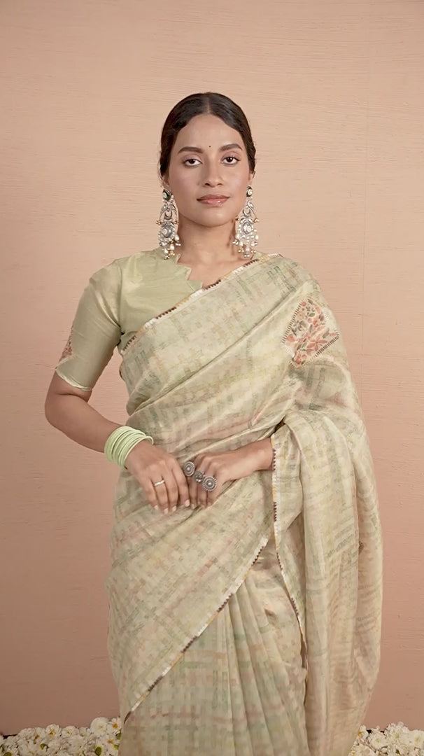 Color: Fresh pista saree that exudes a charming and calming elegance.