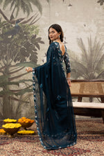 Make a bold and regal statement in this Royal Blue saree, exquisitely crafted from Georgette Silk. Adorned with digitally printed borders, intricate patchwork, and delicate handwork detailing, this saree is the perfect blend of tradition and sophistication—ideal for festive occasions and elegant celebrations.