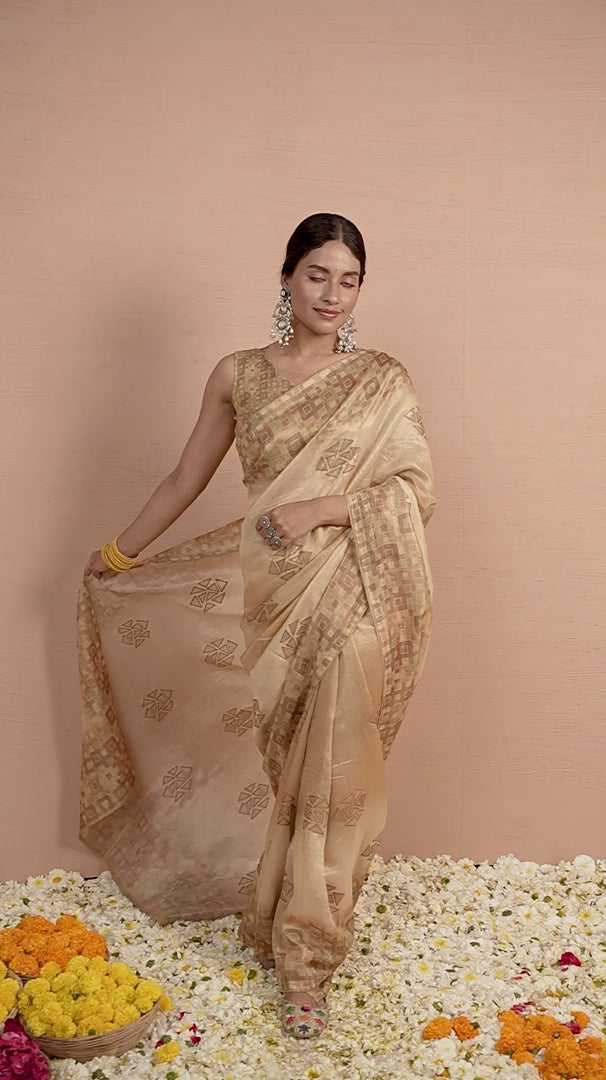 This tissue yellow saree with digital print and embroidery boota is ideal for festive, ethnic, or formal occasions.